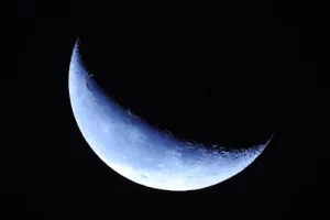 Uma pequena faixa curva da Lua torna-se visível após a lua nova. A porção iluminada da Lua está aumentando (crescente). O termo “crescente” deriva do inglês antigo e significa “crescer ou aumentar”, descrevendo como o lado iluminado da Lua se expande de um fino crescente até quase a fase cheia. Essa fase corresponde a cerca de metade do ciclo lunar de 29 dias, contrastando com a Lua minguante, quando a luz diminui.